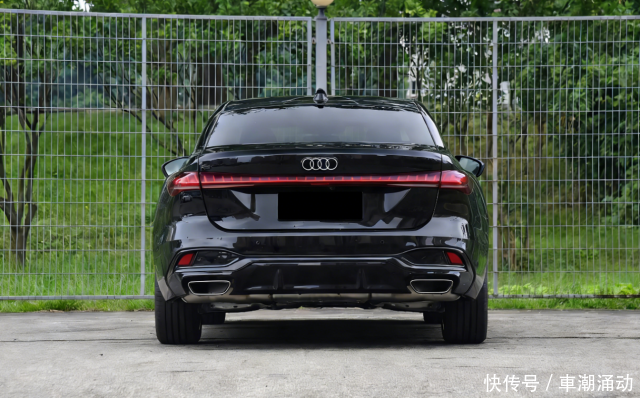 车身尾部同样配有可发光的四环LOGO,同时新车还标配了造型圆润且立体感很强的贯穿尾灯,点亮时的动态光效同样可以彰显“灯厂”的魅力。与此同时,奥迪A5L还支持选装新一代OLED贯穿尾灯,尾灯两侧的光源布局与头灯组一样,都可以通过车机系统进行调节。另外,底部的排气系统也采用了外露的形式,搭配仿扩散器包围,也能强调整车的力量感和运动感。