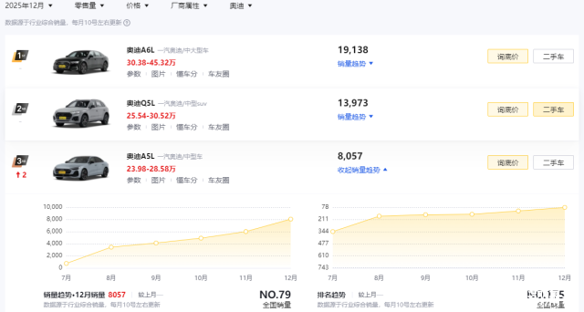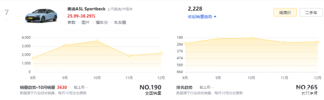 在聊奥迪A5L之前,其实归属于上汽奥迪厂商的奥迪A5L Sportback同样是一款让人忍不住回头去看的产品。但从实际的销量来看,后者在12月仅交付了2228台新车,而这也跟其相对小众的产品定位,以及上汽奥迪经销商分布比例较小有很大的关系。